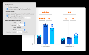 یکی از ویژگیهای دیگر graphpad prism ، توانایی ساخت نمودارهای زیبا و قابل فهم است. این نرمافزار انواع مختلف نمودارها مانند نمودارهای پراکندگی، بار چارتها، نمودارهای خطی و دایرهای را پشتیبانی میکند و میتوان با استفاده از آنها نتایج را به صورت بصری واضح و جامع ارائه داد. علاوه بر این، این نرمافزار اجازه میدهد تا کاربران نمودارها و چارتها را با افزودن برچسبها، عناوین و توضیحات سفارشی کنند تا بتوانند پیام تحقیقاتی خود را به طور مؤثرتر منتقل کنند.